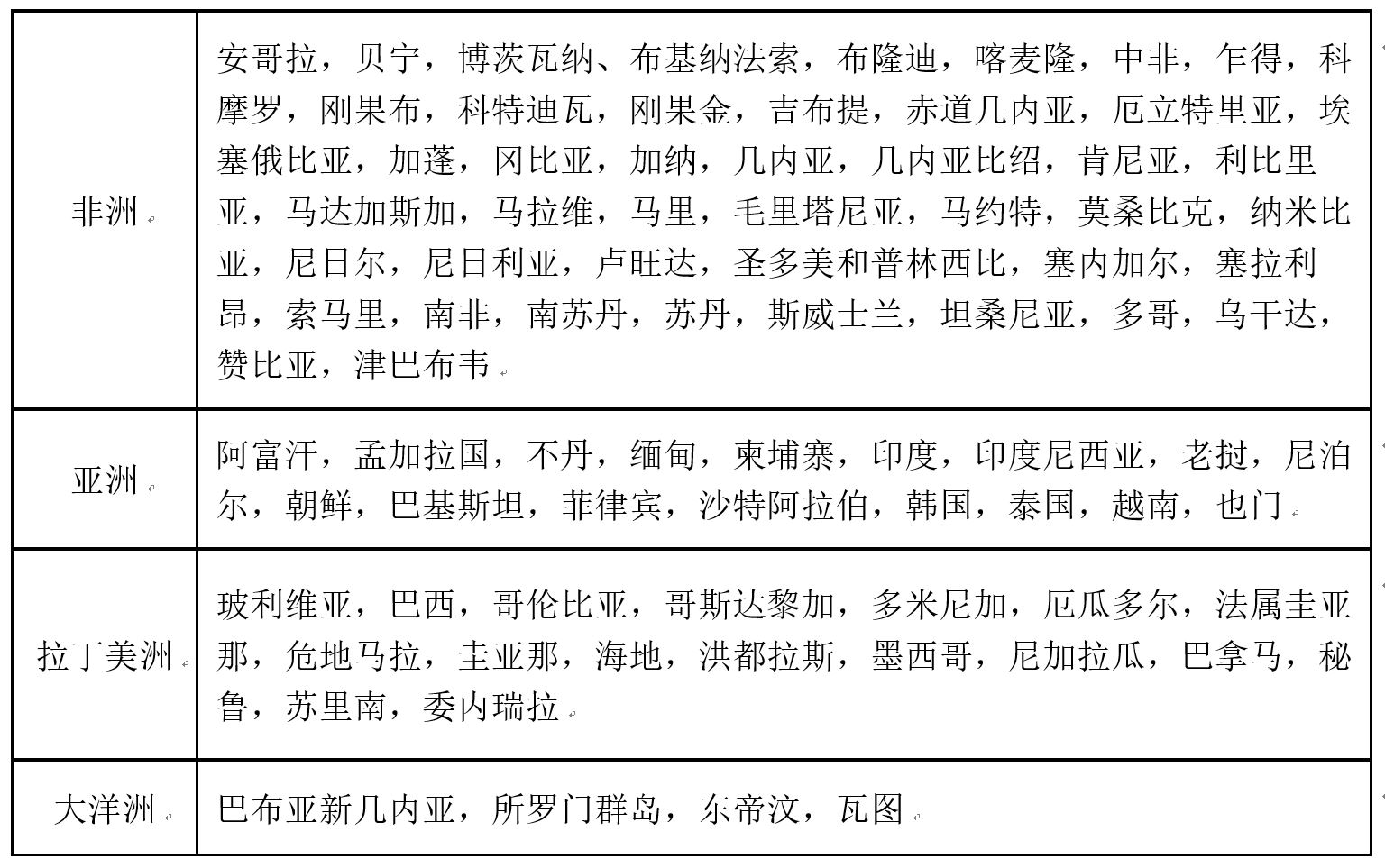 表1. 当前疟疾流行国家
