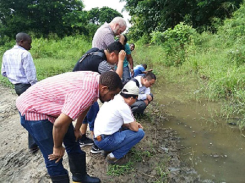 2016年4月24-26日,现场工作组特别邀请英国利物浦热带医学院媒介专家Gerry Killen 教授,联合在试点地区不同区域,对试点地区地质、土壤、水文、植被等媒介按蚊孳生环境进行系统调查,调查结果显示试点地区村民居住区地质主要为河流冲积平原、砂土类土壤、渗漏性强,蓄水能力差,一般降雨难以形成适宜的按蚊孳生地;但试点地区村庄周围的芦苇、纸莎草等植被分布地则是按蚊长期适宜的孳生地;每年雨季洪水后,Rufiji 河携带的大量淤泥,沉积在河流两岸形成沼泽地带,大大小小水坑等极易成为冈比亚按蚊种团的临时孳生地。
