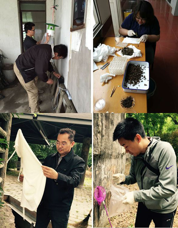 2016年5月,寄生虫病所媒介控制室有关专业人员在沪开展了蚊、蜱及螺的现场监测调查工作。5月18日,在上海动物园开展蜱和螺分布调查工作,专业人员检查了大猩猩、长臂猿、金丝猴等灵长类动物以及巴西狼等食肉动物,马鹿和骆马等食草动物体表蜱虫寄生情况,同时用布旗法对巴西狼等动物活动的草地进行拖地式筛查,获得上海动物园蜱虫分布的首批基线本底数据。同时,调查了动物园内池塘,沟渠等处螺的分布,获得环棱螺等螺种。