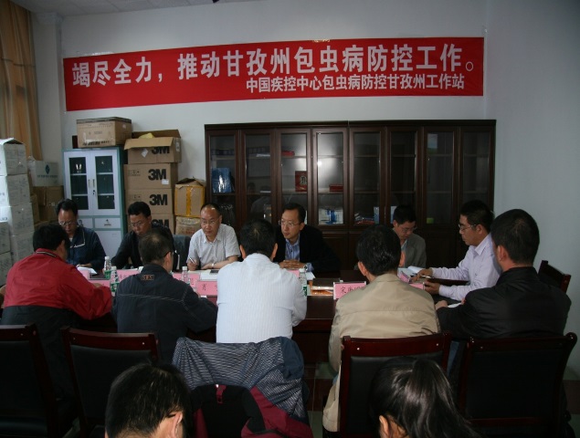 工作站杨诗杰站长首先向督导组汇报了2016年上半年工作站工作进展情况包括建立沟通协调机制、推进重流行乡防治试点与子项目现场工作、开展人员培训带教、建立专家人才库网以及加强工作站内部管理等。督导组在听取汇报的基础上,还与相关人员进行了座谈并查阅了工作资料,督导组认为工作站上半年工作稳步推进,建立了较严格的内部管理制度,经费、资产等管理较规范,协调与保障措施到位,工作站的运行与管理取得了实效。为做好下半年工作,督导组建议要进一步发挥现有运转机制、工作机制的效能,整合与优化国家、省、州、县各方资源,协调做好重流行乡防治试点、子项目现场工作等,努力把“试点”打造成“亮点”,出经验、出成果,同时要加强工作站内涵建设,培育团结、奋斗、乐观的工作站文化。