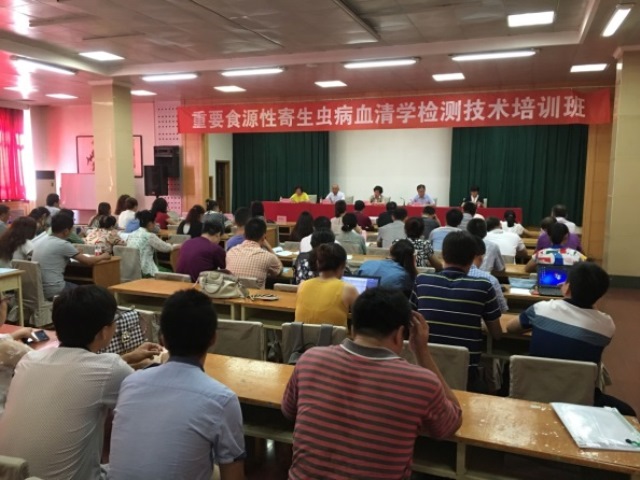 2016年7月27-28日,“重要食源性寄生虫病血清学检测技术培训班”在新疆乌鲁木齐市举行。寄生虫病所李石柱副所长、土食源室陈颖丹主任及科室人员、新疆疾控中心副主任阿迪里.司马义出席了会议,来自新疆、陕西、宁夏等8省(区、市)负责全国监测工作的专业技术人员50余人参加了培训班。培训班由陈颖丹主任主持。