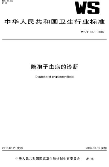 该标准于2016年5月20日发布,将于2016年10月15日实施,将为我国人体隐孢子虫感染调查和隐孢子虫病的临床诊治提供技术支持。