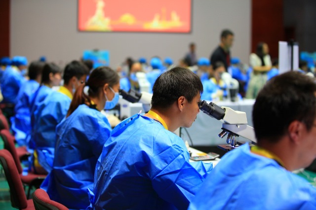 竞赛分为理论知识考核和检测技能操作考核两部分。理论部分主要考核常见和重点寄生虫病的诊断方法、防治措施以及常规检测技术等基本知识。技能操作主要考核常见和重点寄生虫标本片的制作、染色等以及镜检鉴别等技术。江苏省代表队获得团体一等奖, 湖南省新晃县疾控中心蒲桂芝同志获得个人综合考核一等奖。竞赛共决出个人奖34名,团体奖10名,优秀组织奖5名,团体鼓励奖3名。