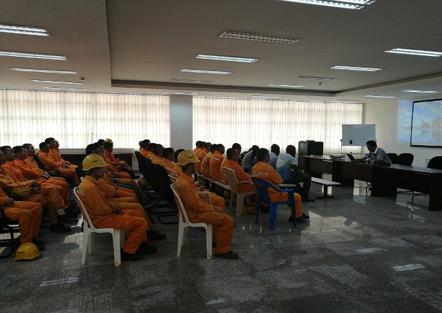 讲座由中国中材国际坦桑尼亚分公司安全经理许林主持。工作组首先播放了项目宣传视频,使与会人员了解该项目是在中英坦三方共同合作下,致力于中国疟疾防控经验首次在非洲坦桑尼亚以试点形式的应用及推广,旨在降低试点地区疟疾的疾病负担和降低发病率;接着工作组专家蒋伟康、林康明、吴小红和王海防分别就《疟疾基本知识、传疟媒介及个人防护措施介绍》、《疟疾的诊断与治疗》及《境外归国人员须知》等进行了详细的讲解,使与会代表充分了解疟疾疾病是由感染疟原虫所致及疟原虫感染人的基础理论知识,个人需要采取的防护措施,疟疾的临床表现、如何诊断与治疗,以及回国后应注意的事项等。在提问阶段,工作组耐心解答了与会代表提出的在工作生活中遇到的相关疟疾防治问题。整个讲座在良好的气氛中进行,参加讲座的代表纷纷表示受益匪浅,对工作组精彩的讲座报以阵阵热烈的掌声。