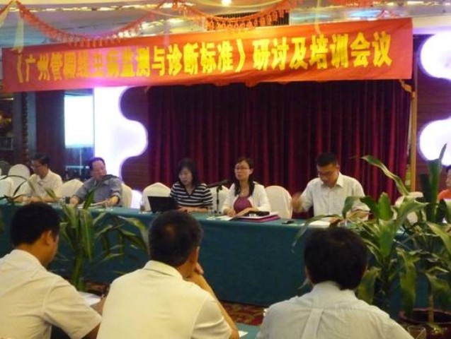 为总结广州管圆线虫病症状监测与传播预警试点工作,寄生虫病所于201242628日在广东省开平市举办了“广州管圆线虫病监测与诊断标准研讨班”。会议首先介绍了此次会议的目的和预期结果。随后,各个试点单位汇报了过去3年监测工作结果,并指出了监测过程中存在的问题和后续工作计划。3年的监测培训了一支专业队伍,提高了医务工作者的防病意识,探索性地建立了“医院-疾控”联动机制,了解了当前广州管圆线虫病的发病情况。但同时也发现一些监测中的问题,如临床辅助诊断技术效果较差,单纯嗜酸性粒细胞增多性脑膜脑炎症状监测效率较低,各地预警阈值需要差别化处理,宣教不到位等。此次会议指出了今后疾控与科研的努力方向,各单位表示寻求合作契机,在某些关键环节取得突破。