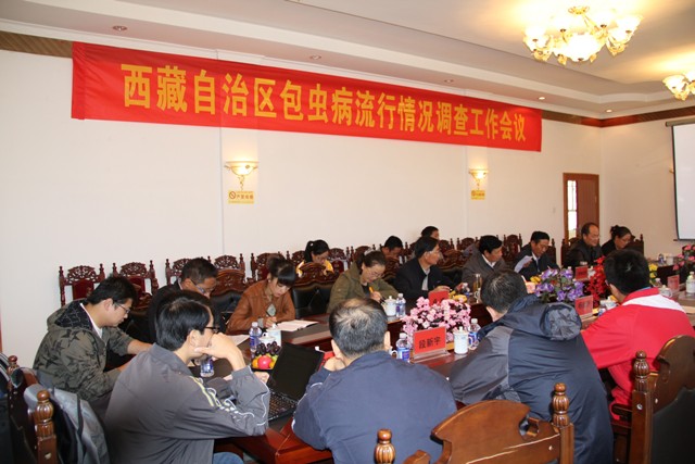 9月4日,西藏自治区包虫病流行情况调查工作会议在拉萨召开,西藏自治区卫生厅喜乐副厅长、中国疾控中心寄生虫病所肖宁副所长、西藏自治区疾控中心西绕若登主任、张宏忠副主任、郁晓峰副主任、援藏专家组一行以及新华社、健康报、光明日报、国际广播电台4家媒体的驻藏记者等有关人员参加了会议。会议就西藏自治区包虫病流行情况调查工作的组织实施、人员及现场安排、注意事项等相关事宜进行了商讨和部署。9月5日至24日,在西藏自治区卫生厅和疾控中心的协调下,分赴山南地区措美县、日喀则地区亚东县、林芝地区林芝县、那曲地区巴青县开展了包虫病流行情况调查工作。在当地各级政府及有关部门的高度重视和大力支持下,顺利地开展了基本情况调查、B超查病、血样采集、防治知识问卷调查,犬粪样采集和屠宰情况的了解等工作,提前完成了现场调查的有关工作,随后将开展人群血样和犬粪样的检测工作。现场调查工作结束后,各工作组就现场工作情况及调查的初步结果分别同各级政府或有关部门进行了反馈,并就包虫病防治工作中存在的一些问题提出了建议。