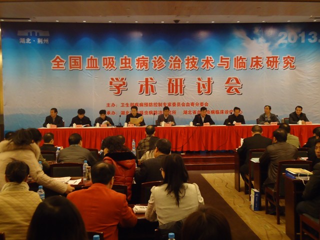 为进一步加强血吸虫病临床研究与转化医学的进程,卫生部疾病控制专家委员会血寄分委会联合湖北省血吸虫病专家委员会于2013年1月4日至6日在湖北省荆州市召开了“全国血吸虫病诊治技术与临床研究学术研讨会”。卫生部疾控局雷正龙副局长、血防处高启发调研员、湖北省卫生厅张晋副厅长、荆州市徐朝平副市长以及荆州市卫生局张大平局长等领导出席了本次会议。来自全国血防各界的专家、防治人员共计100余人参加了研讨会。