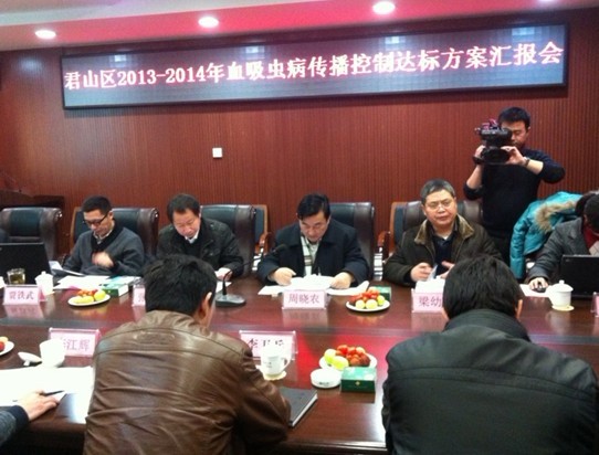 针对君山区血吸虫病疫情现状及传播控制达标工作,专家们积极献言献策,认为君山区血吸虫病防治工作已经取得很大的成绩,但由于君山区环境复杂,钉螺面积大,流动渔船民多,2013年血吸虫病传播控制达标工作仍面临挑战。专家们指出君山区血吸虫病传控达标工作的难点在于流动渔船民的调查和管理,防治重点则应放在感染性钉螺的控制上。对于君山区制定的血吸虫病传播控制达标实施方案,专家们建议应进一步明确工作目标,加强以行政村为单位的疫情数据的分析利用力度,以为今后的达标考核工作提供依据。