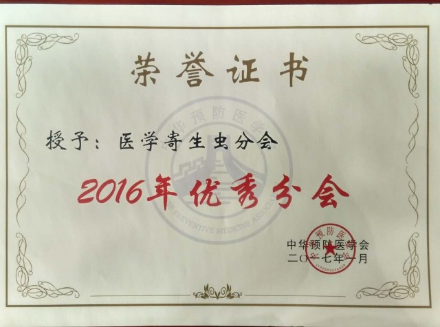 医学寄生虫分会荣获2016年中华预防医学会优秀分会称号