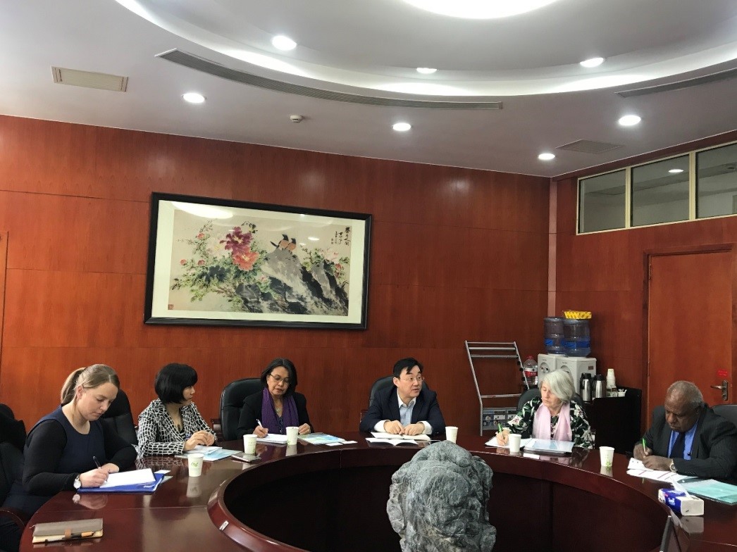 我所为中国-澳大利亚-巴布亚新几内亚三方疟疾试点合作项目(中-澳-巴新三方疟疾试点项目)的中方技术主管机构,承担相关技术援助工作。2018年4 月9日,中-澳-巴新三方疟疾试点项目中期评估小组成员Linda Kelly博士, 圣言大学副校长Francis Hombhanje教授,澳大利亚发展署的Rahmah Roggero女士和北京大学公共卫生学院郭岩教授以及澳大利亚驻华使馆一秘Ella Kinnear女士一行访问我所,对中-澳-巴新三方疟疾试点项目开展中期评估。