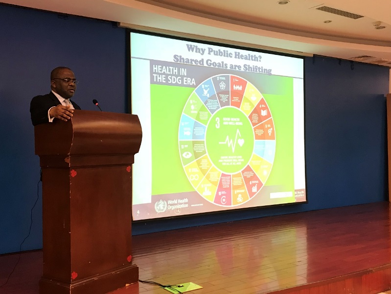 学术会议上,商务部研究院西亚非洲所武芳所长受邀做“中国与非洲的经贸合作”专题讲座。武芳所长认为,中非经贸合作发展有赖于非洲国家改善国内营商环境,更要加强中非政府协调沟通力度,提高对企业“走出去”发展的政策支持力度,同时企业应做好风险规避,注重培养人才,加强属地化经营步伐,这些与我国全球卫生发展所坚持的“走出去”“交流合作”“政府支持”“注重人才培养”等原则有着异曲同工之处。世界卫生组织驻坦桑尼亚代表Adiele Nkasiobi Onyeze博士介绍了中非公共卫生合作机遇和挑战。清华大学程峰教授做了题为“新时代全球健康的中国方案”的报告。韩铁如教授介绍了世界卫生组织的国家合作战略以及对中国全球卫生合作的参考意义。广州中医药大学王琪博士以“我国专家在科摩罗开展复方青蒿素快速控制疟疾的实践”为例,分析在一带一路背景下利益相关方在中非重大传染病控制的角色和功能等。