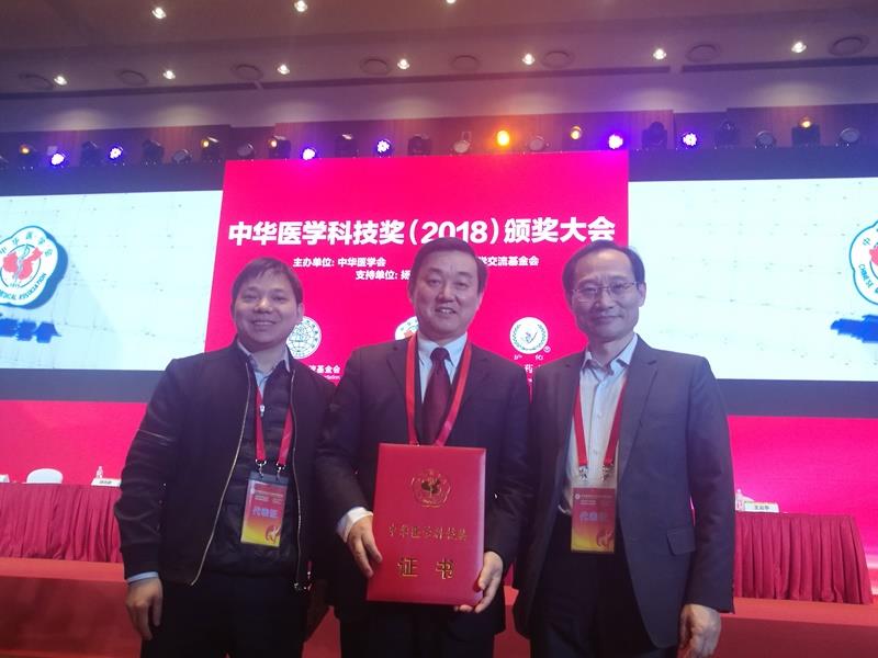 2019年1月11日,中华医学会中华医学科技奖(2018)颁奖大会在北京隆重召开。第十二届全国政协副主席、中华医学会名誉会长韩启德院士,中华医学科技奖评审委员会领导小组成员以及有关方面领导出席了颁奖大会。共有91项(人)医学科研成果荣获2018年中华医学科技奖,其中一等奖8项,二等奖24项,三等奖48项,国际科学技术合作奖1项,卫生管理奖1项、医学科学技术普及奖2项、卫生政策奖2项和青年科技奖5项。