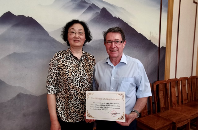 会后郭京萍会长向瑞士科学院院长唐纳教授和前世界卫生组织热带病控制司司长恩格斯颁发了证书,特聘为热带病专委会外籍顾问。