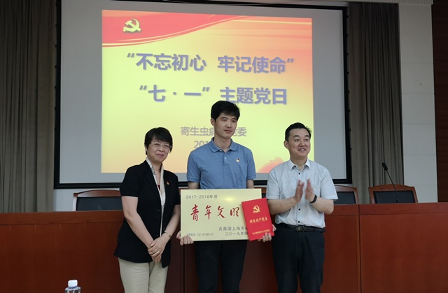 活动中,许学年副所长宣读了上半年我所获得上海市教卫党委系统“优秀党员”、上海市卫生健康委“两优一先”和中国疾控中心“两优一先”表彰的名单,韩帅作为优秀党员代表上台领奖,并分享了他在创建青年文明号、驻点等工作中的体会和感悟。