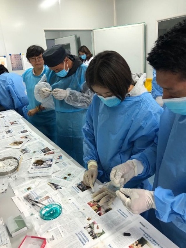 为进一步完善全国肝吸虫病和土源性线虫病监测体系,全面贯彻中国疾控中心脱贫攻坚专项精神,推进西藏防治工作进程,2019年7月10-11日,西藏自治区土食源性寄生虫病监测技术培训在西藏顺利举办。西藏7个地市及2019年监测点所在县和西藏自治区疾控中心寄生虫病所共计20余位业务人员参加,西藏自治区疾控中心寄生虫病所贡桑曲珍所长主持培训班。中国疾控中心寄生虫病所土食源室陈颖丹主任带领科室多名专家授课指导。