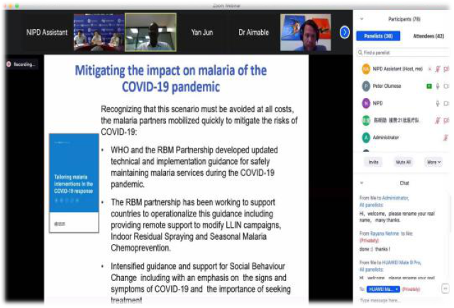 通过新冠疫情下中非疟疾防控合作交流与研讨,及时交流了新冠疫情下中非疟疾防控合作信息,进一步促进世界卫生组织、遏制疟疾伙伴关系、盖茨基金会、以及中非政府和相关部门联合战胜新冠疫情的信心。