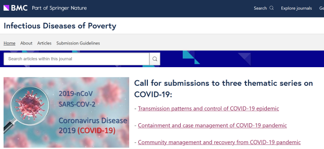 2020年,新冠肺炎疫情肆虐,全球多个国家面临疫情和经济衰退的双重威胁。为更好地应对新冠疫情,迅速传播和分享在疫情防控和科研中获得的科学证据和经验,有效促进遏制疫情传播,提供社区干预和多层次宽领域协作经验,推动低中收入国家在经济落后、公共资源匮乏、边远及恶劣环境下发展适宜当地的防控策略和恢复措施,Infectious Diseases of Poverty组织出版了三期学术专辑,如“新冠疫情的传播模式和控制策略”、“新冠疫情控制和病例管理”和“新冠疫情下的社区干预和恢复措施”等。这三期新冠学术专辑促进了全球相关人群了解这一疾病的流行病学和暴发特点,加速推动诊断方法、治疗策略和疫苗研发的进程,探索阻断新冠疫情传播的机制,提出控制策略,进而维护人民生命健康,为政府制定相关政策提供依据,以科学出版抗击新冠疫情。目前,这三个专辑均仍在征稿中。