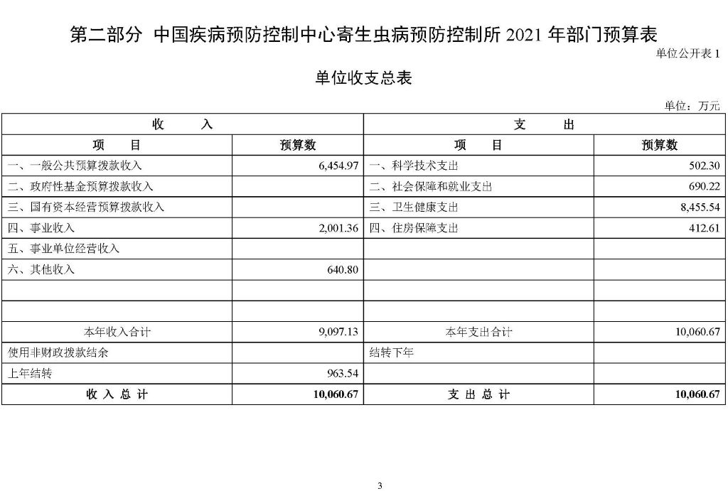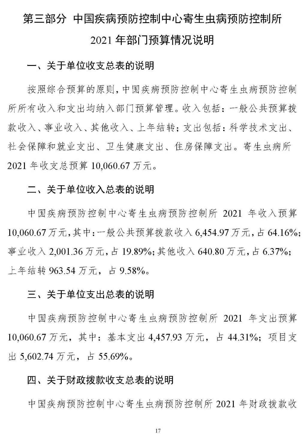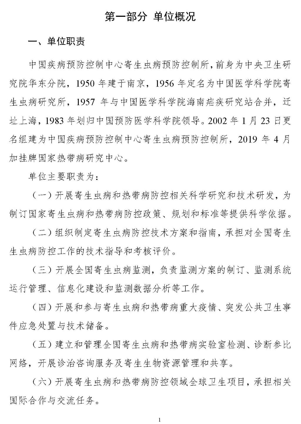 中国疾控中心寄生虫病所(国家热带病研究中心)2025年部门预算