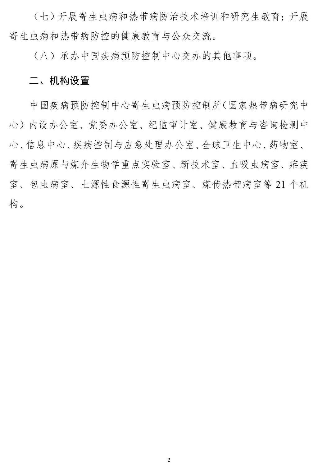 中国疾控中心寄生虫病所(国家热带病研究中心)2025年度招聘人员公告