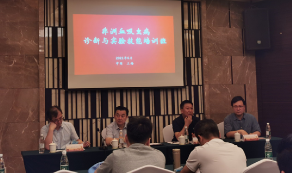 为做好中非血吸虫病防控合作技术储备,提升省级疾控人员对非洲血吸虫病的诊断能力和实验技能,2021年6月21日-26日,中国疾控中心寄生虫病所在上海举办中非血吸虫病诊断与实验技能培训班。中国疾控中心寄生虫病所周晓农所长和李石柱副所长,中国疾控中心全球公共卫生中心王晓春研究员出席开班式并讲话。周晓农强调中非血吸虫病合作项目将以技术指导为主,要求学员们通过培训更多地了解非洲血吸虫病现状、流行特征和防治需求。王晓春对中非血吸虫病合作项目表示期待,他指出开展此次培训有利于了解非洲的需求,有利于将中国血吸虫病防控经验转化并应用到非洲。开班式由中国疾控中心寄生虫病所全球卫生中心吕山主任主持。来自湖南、湖北、江西、安徽、江苏、浙江、云南等7个省级疾控中心(寄生虫病防治所)和中国疾控中心寄生虫病共34人参加了培训。
