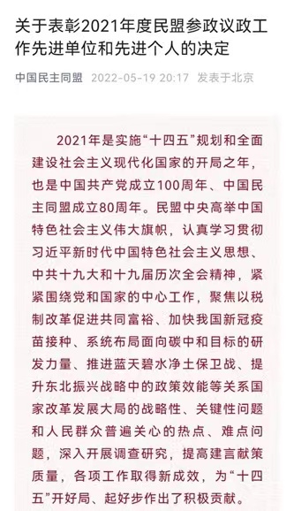 曹淳力同志是我所有着三十余年疾控生涯的公卫人。他长期投身于寄生虫病尤其是血吸虫病防治科研,积极参与寄生虫病和疾控的应急处置。在所党委引领下,曹淳力同志在完成本职工作时,还积极担负了社会职责。作为民盟上海市卫生健康委副主任委员,曹淳力同志“不忘初心,牢记使命”,在思想上政治上行动上与党中央保持高度一致;秉持“肝胆相照”宗旨,全力以赴做好参政履职各项工作,奔走国是,关注民生。他不仅认真出色地完成本职工作,而且主动思考基层工作中的弱项和短板,结合其本职工作和长年现场经验,为我国公共卫生和疾病控制建言献策,提出多项合理化建议。在中国民盟“2021年度民盟参政议政工作会议”上,曹淳力同志获得“2021年度民盟参政议政工作先进个人”称号。