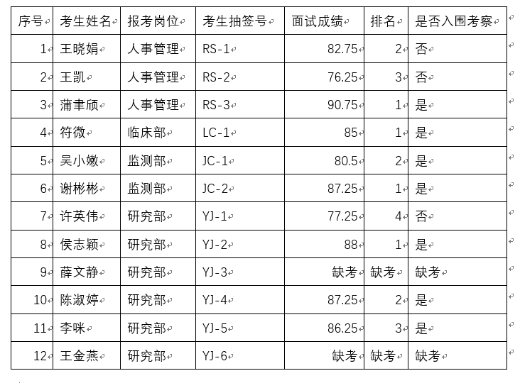 根据海南热带病研究中心2022年公开招聘工作人员公告,我中心2022年公开招聘工作人员面试已结束,现将面试成绩及入围考察人选予以公告。