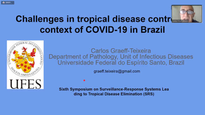 主题论坛Ⅱ:热带病控制与消除现状及面临的挑战。巴西圣埃斯皮里图联邦大学Carlos Graeff-Teixeira教授讲述了巴西热带病防控的最新进展以及新冠疫情对热带病控制带来的挑战,津巴布韦国家卫生研究所所长Nicholas Midzi教授重点展示了吡喹酮化疗后津巴布韦血吸虫病最新调查结果;巴布亚新几内亚卫生部疟疾项目专家Leo Makita介绍了中国-澳大利亚-巴新三方疟疾防控项目的工作进展。