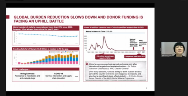 主题论坛Ⅲ:中非热带病控制合作实践。中国疾控中心孙军玲研究员阐述了中国援塞拉利昂实验室新冠病毒和疑似出血热应急监测情况;比尔及梅琳达·盖茨基金会中国办公室高级代表韦晓宇女士介绍了盖茨基金会对中国援助非洲的支持战略;中国疾控中心寄生虫病所王多全研究员分享了中国消除疟疾的经验并详细介绍了中国-坦桑尼亚疟疾防控合作项目。