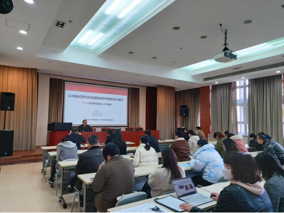 为全面深入学习领会党的二十大精神,扎实推进宣传、贯彻党的二十大精神的落实,2月28日上午,寄生虫病所党委与中医文献馆党总支联合举办党的二十大精神宣讲会,特邀华东政法大学教师工作部部长、马克思主义学院院长赵庆寺教授作了《以中国式现代化全面推进中华民族伟大复兴》的理论宣讲。