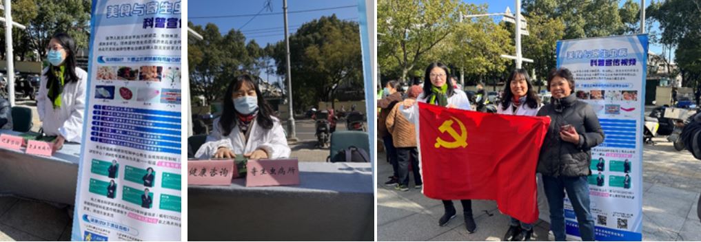 活动当天,健教中心第三党支部党员蔡玉春同志(上海医苑新星科普讲师团讲师)和吴秀萍研究员为居民朋友提供健康咨询,协同80岁中医专家为大家量血压,解答市民朋友们关心的健康问题。同时宣传寄生虫病防治知识,宣传《美食与寄生虫病》科普课程,请大家在品味美食的同时,谨防寄生虫病感染,注意餐桌上的食品安全。