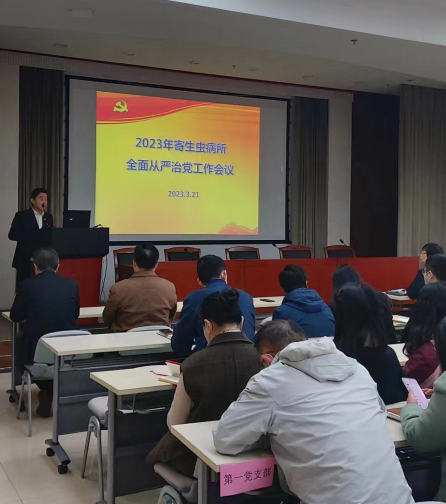 3月21日,寄生虫病所党委召开2023年全面从严治党工作会议,在全面总结上年度工作的基础上,重点部署2023年工作任务,坚定不移把全面从严治党向纵深推进,切实将党的二十大决策部署落实到位。全所在职党员、离退休支部书记参加会议,所民主党派及少数民族代表列席会议,会议由党委副书记、所长周晓农主持。