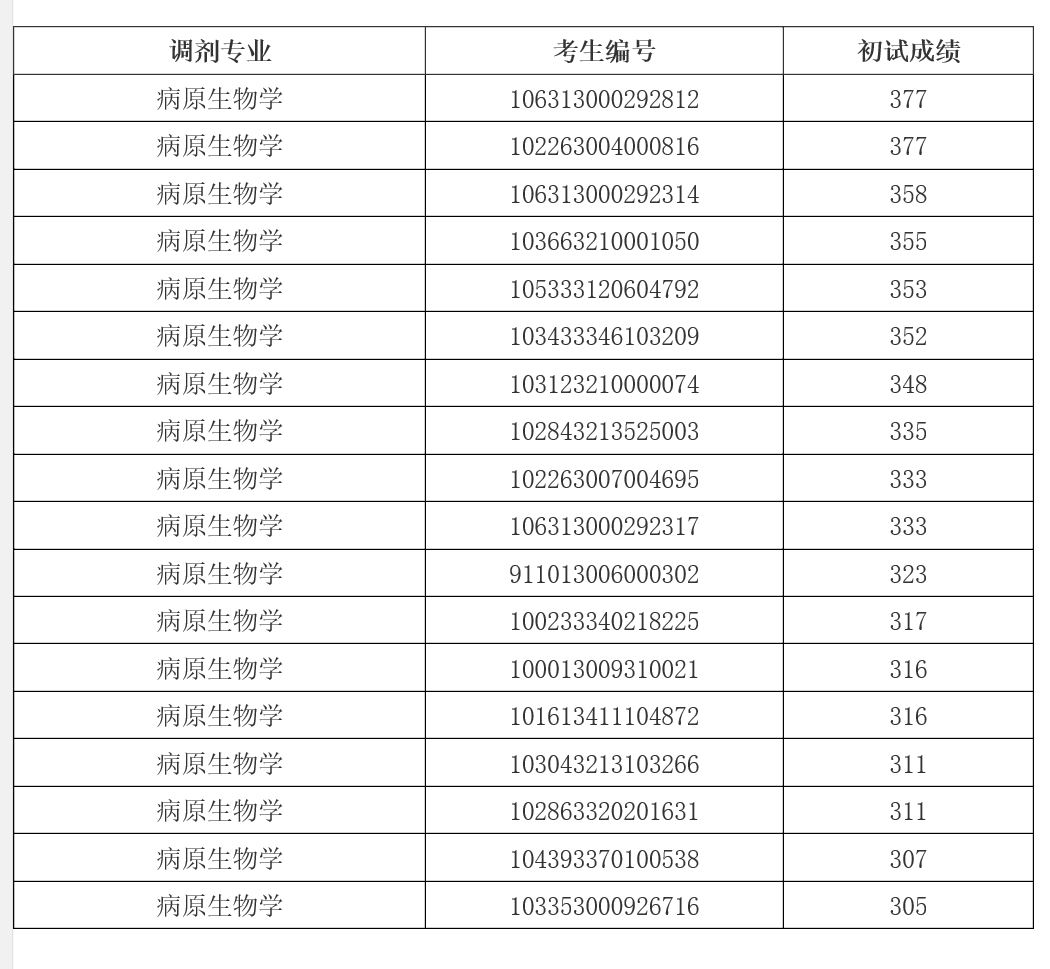 寄生虫病所病原生物学专业2023年硕士生调剂复试名单