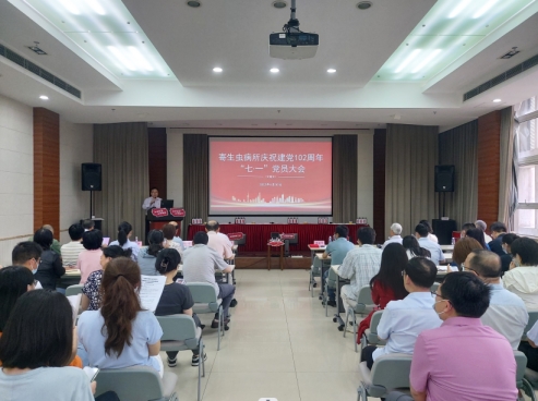 为迎接建党102周年,教育引导全体党员深入学习贯彻习近平新时代中国特色社会主义思想,不断增强守初心、担使命的思想自觉和行动自觉,6月30日上午,寄生虫病所党委在大礼堂召开了庆祝建党102周年“七·一”党员大会。大会由代理党委书记曹建平同志主持,全体在职党员、入党积极分子和离退休党员代表参加了大会。