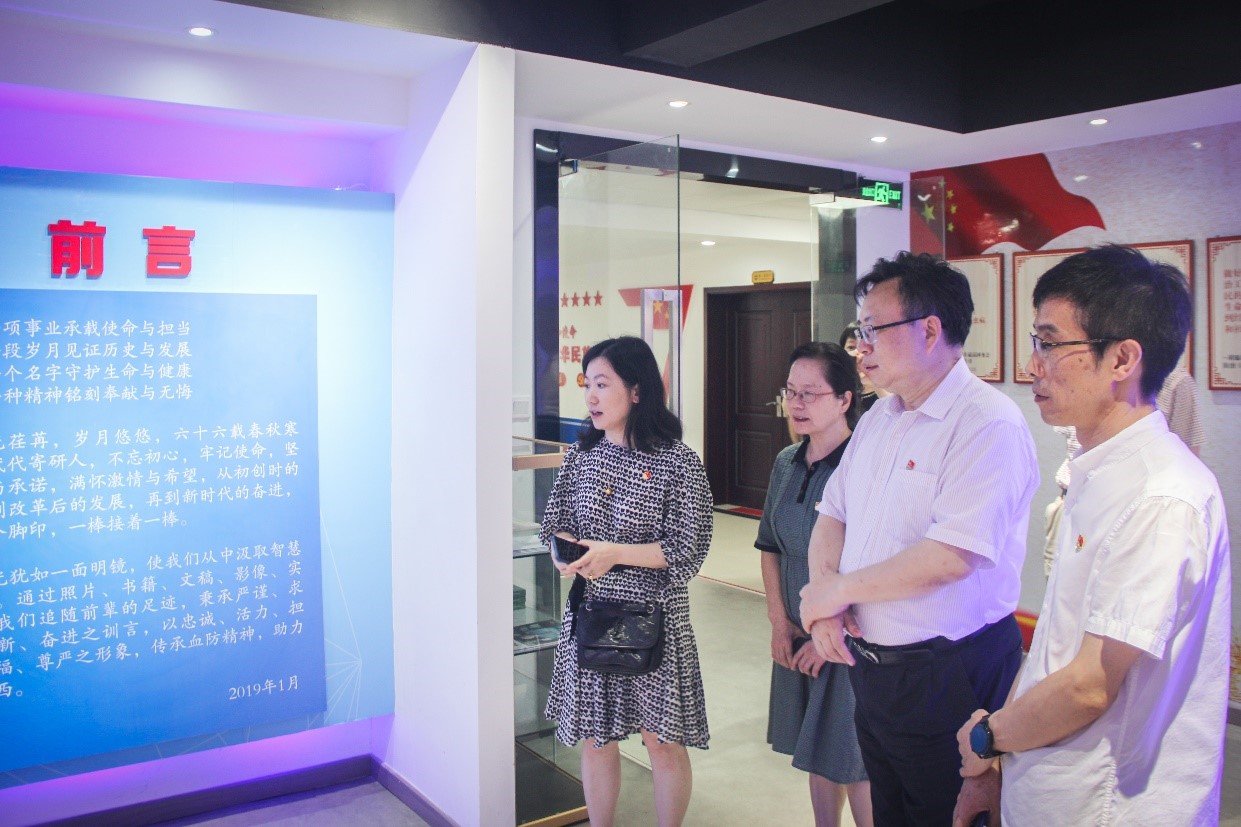调研组实地考察了江西省寄生虫病防治研究所中心实验室、所史展示馆及党建、职工之家和血防成就展示长廊,参观了广信区血防站血防资料室、血防文化馆、住院大楼,看望了住院治疗的晚期血吸虫病患者,分别召开座谈会听取了江西省寄生虫病防治研究所党建和主题教育阶段性工作进展以及江西省和广信区血吸虫病防治科研工作情况汇报,讨论了如何持续巩固血吸虫病综合防治成果以及基层寄生虫病防治机构科研工作、人才队伍现状和能力提升需求等大家关心话题。通过调研了解了基层寄防机构人才培养、科研合作、联合申报科研项目和继续教育培训等需求。