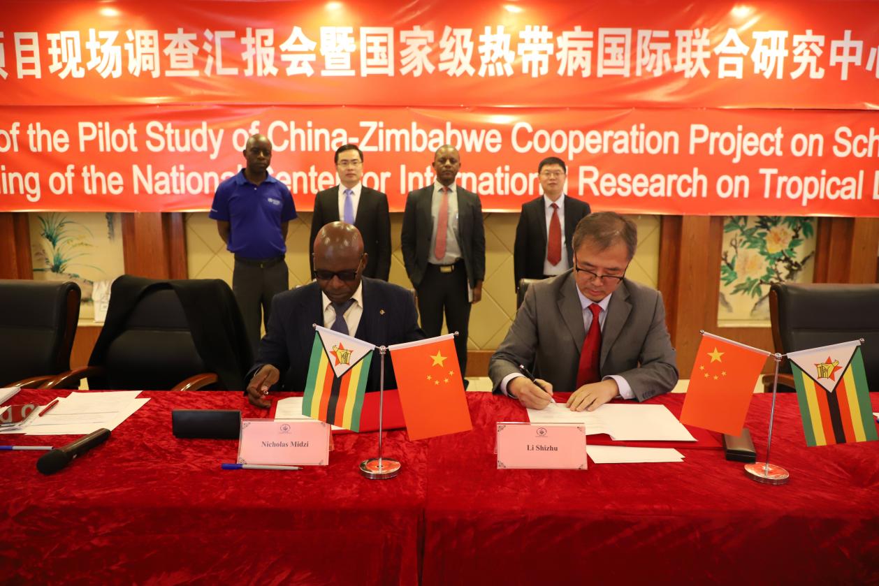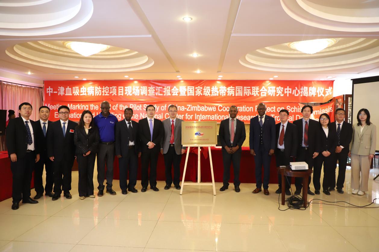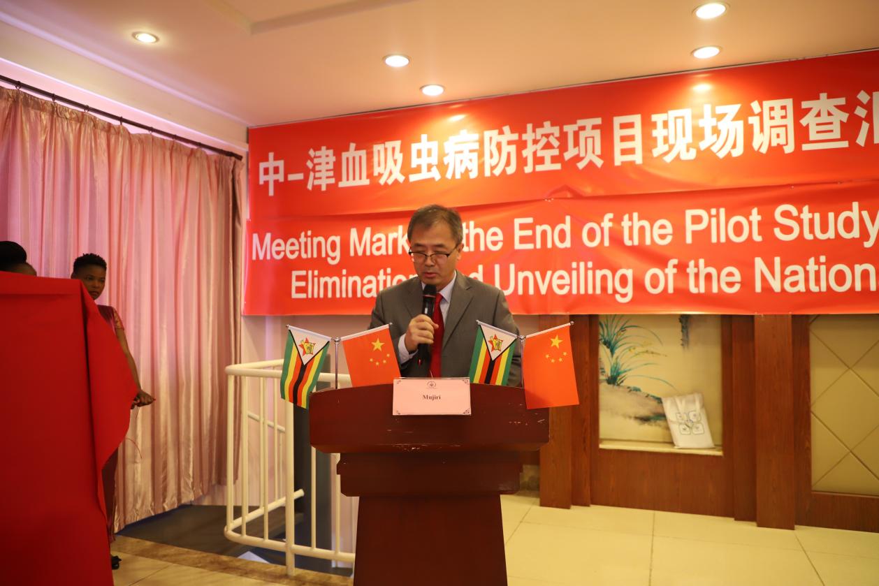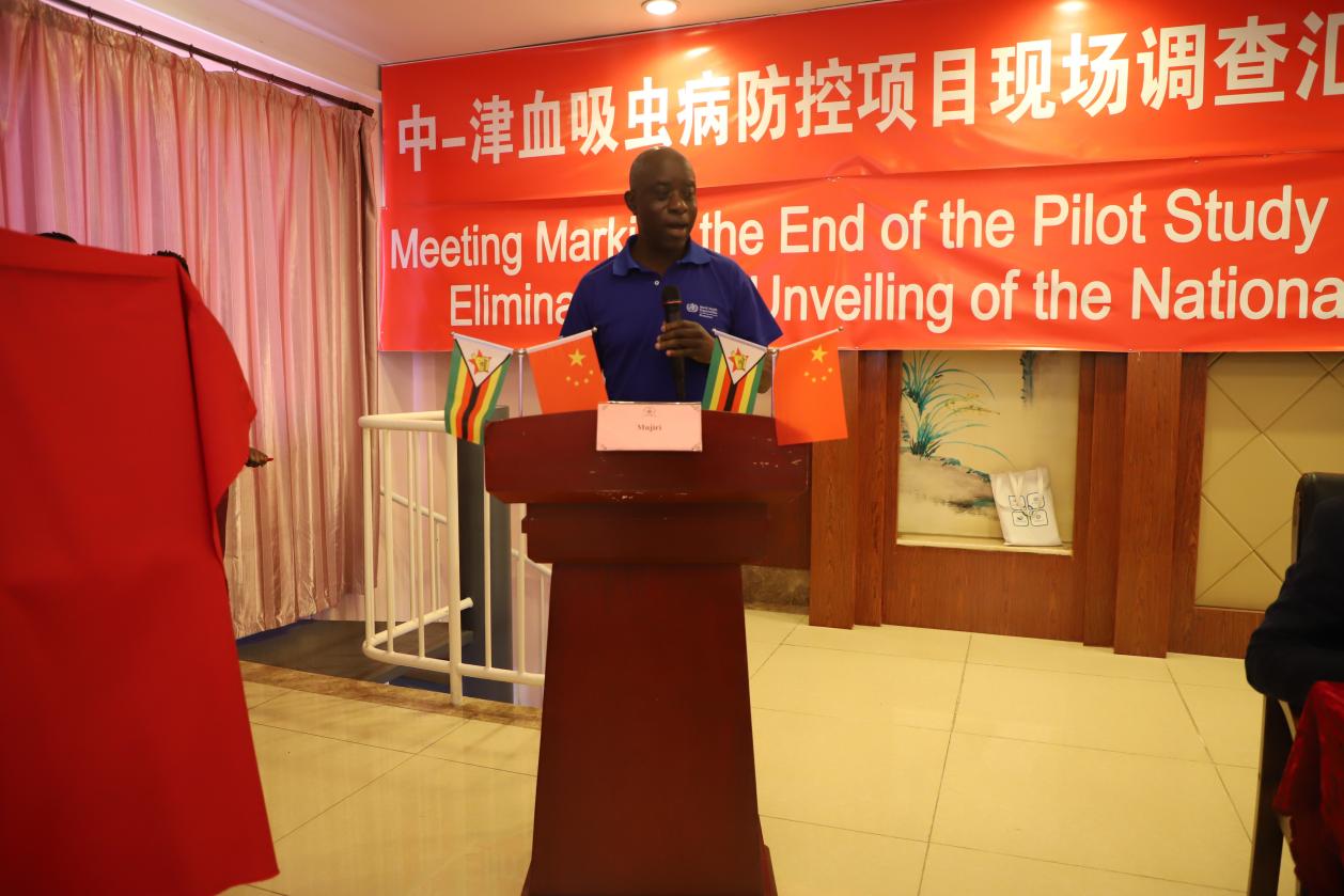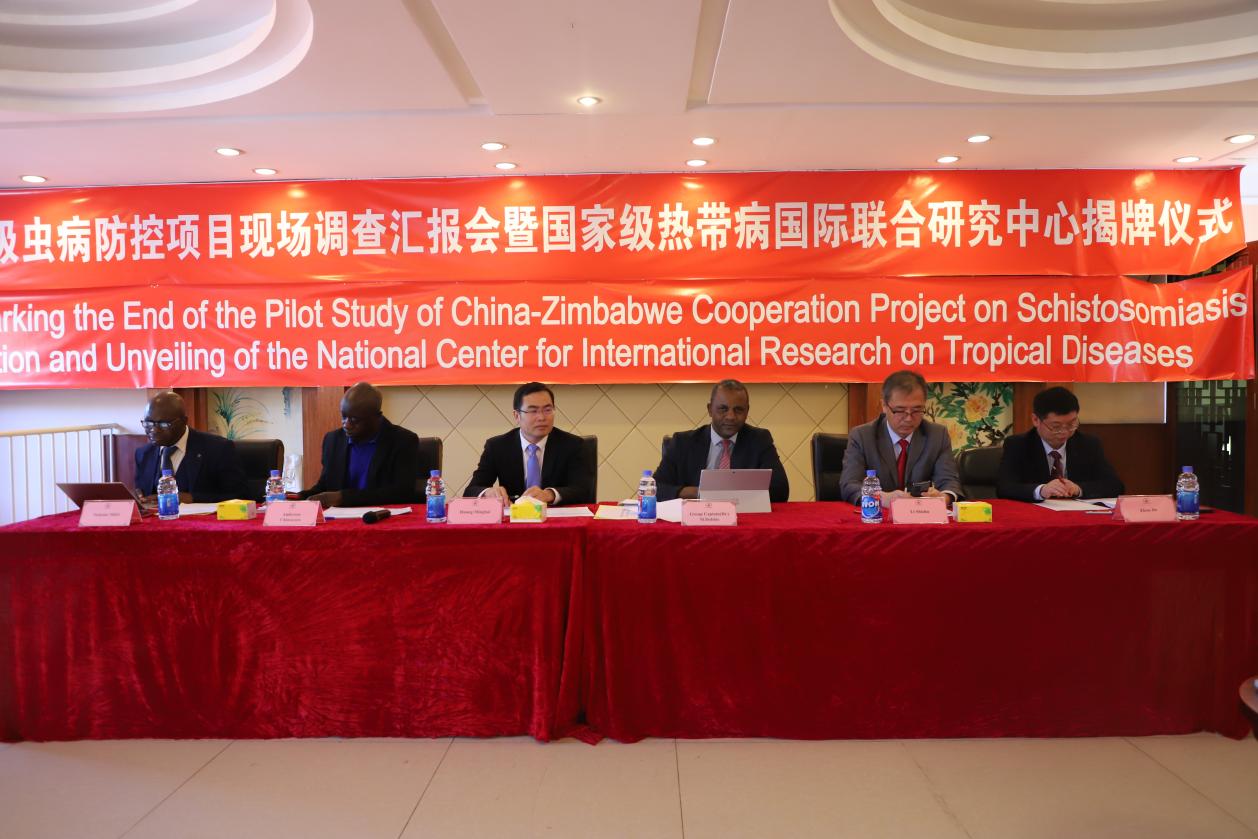 哈拉雷当地时间7月29日,由中国疾控中心寄生虫病所(国家热带病研究中心)和津巴布韦国立卫生研究所联合举办的中非血吸虫病防控合作项目现场调查汇报会暨国家级热带病国际联合研究中心揭牌仪式在津巴布韦首都哈拉雷顺利召开。中国驻津巴布韦大使馆黄明海参赞、中国疾控中心寄生虫病所(国家热带病研究中心)李石柱副所长、津巴布韦卫生与儿童关怀部首席秘书Dr. M.Dobbie、津巴布韦国立卫生研究所所长Prof. Nicholas Midzi、WHO官员Dr. Andersen Chimusoro、湖南省血吸虫病防治所周杰副所长、湖南省援非医疗队欧阳彬队长以及项目中方专家组成员、津巴布韦国立卫生研究所、马绍兰中央省、Shamwa地区和Chevakadzi ward环境卫生官员和工作人员等65人出席会议。