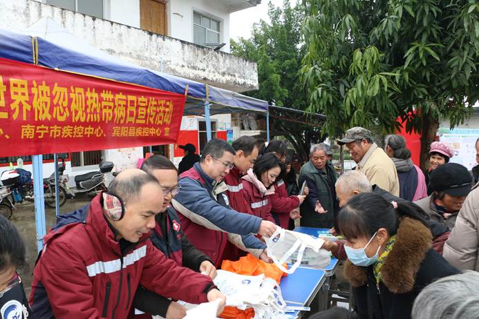 2024年1月30日是第5个“世界被忽视热带病日”,为提高群众对“被忽视热带病”的认识,广西宾阳县举办了现场科普活动。活动现场设在宾阳县古辣镇马界村委。该村为肝吸虫病流行区,亦是血吸虫病历史病区。南宁市疾控中心寄防科全程协同,宾阳县疾控中心、古辣镇中心卫生院、古辣镇马界卫生所等县、乡、村三级防控网紧密配合。广西疾控中心寄生虫病所孟军所长参加活动。现场宣传活动围绕“团结、行动、消除”主题,结合党建活动,通过义诊、接受群众咨询、发放宣传材料等形式,重点宣传肝吸虫病、血吸虫病等与群众生产、生活息息相关的“被忽视热带病”防控防治知识。发放手机架、指甲钳、帆布袋、环保袋、数据线、小钱包、折页等宣传物品600余份,提高了群众对肝吸虫病和血吸虫病等“被忽视热带病”的预防意识。