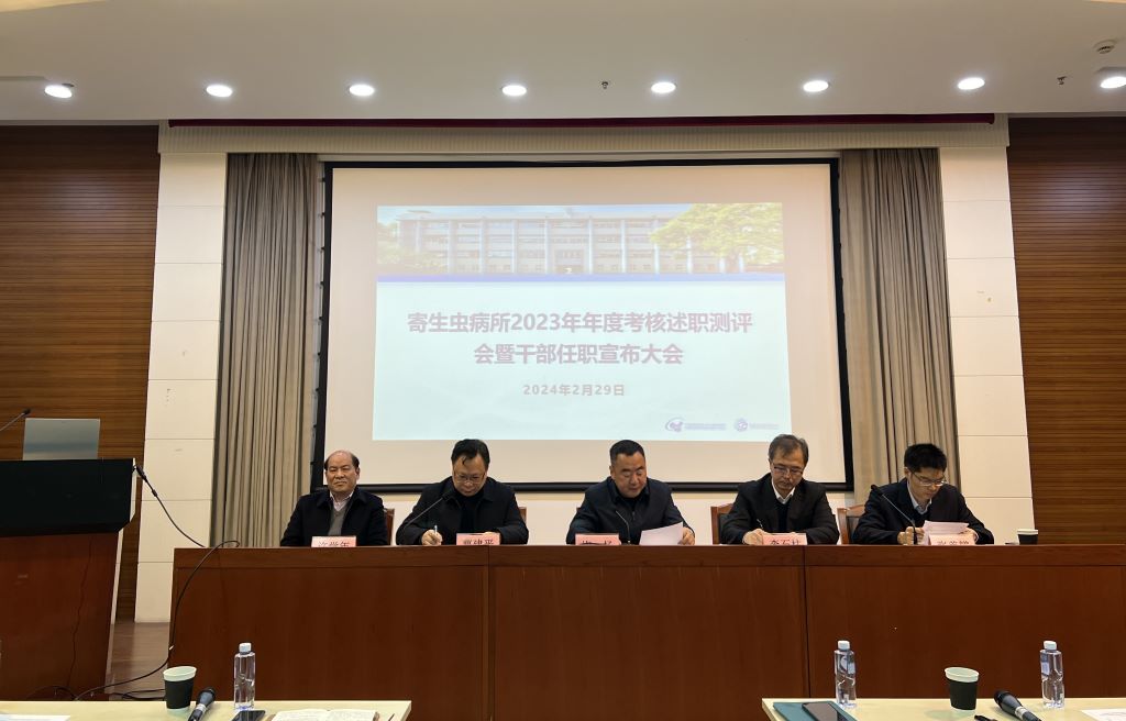 2024年2月29日上午,中国疾控中心寄生虫病所召开2023年所领导班子年度考核述职测评会暨干部任职宣布大会。中国疾控中心党委常委、纪委书记梅扬出席会议并讲话。会议由所党委书记曹建平主持。