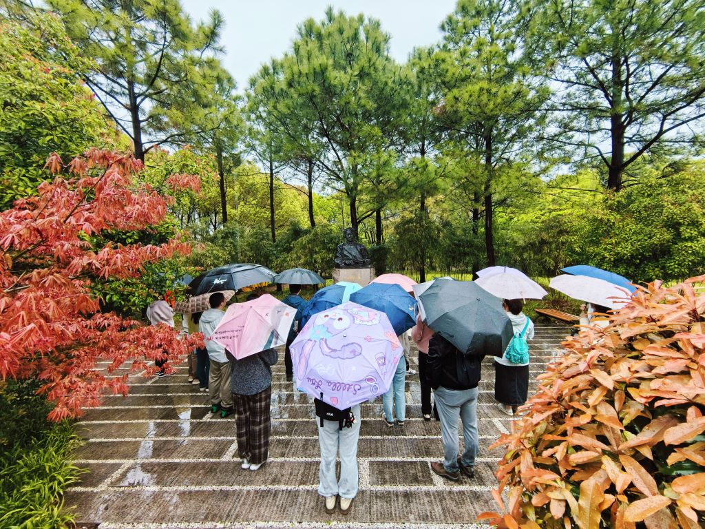 春雨绵绵,未能阻挡职工们热情洋溢的步伐。春雨中的世纪公园更显清新宜人,大家呼吸着新鲜的空气,轻松愉快地撑伞漫步在绿植环绕的步道上。本次活动还特别设置了打卡点——李白等十二烈士就义纪念地,大家在此缅怀先烈,铭记初心。