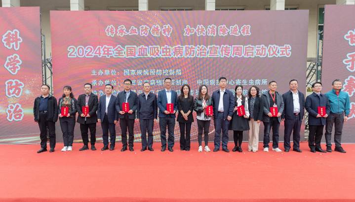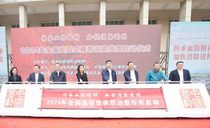 2024年4月9日上午,以“传承血防精神,加快消除进程”为主题的首个全国血吸虫病防治宣传周活动在江西余江启动。国家疾控局卫生与免疫规划司副司长李筱翠出席并讲话。江西省疾控局党组书记、局长李中坚,中国疾控中心寄生虫病防治首席专家周晓农,江西省鹰潭市余江区区长方淼滨分别致辞,国家疾控局卫免司环地处处长冀永才、江西省鹰潭市副市长毛建华、江西省鹰潭市余江区区委书记罗卫国等领导出席活动。中国疾控中心寄生虫病所所长李石柱主持启动仪式。
