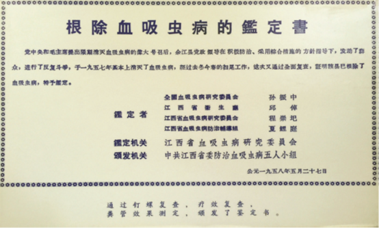 1958年,余江县成功达到了消灭血吸虫病的标准,这一成就得到了毛主席的高度赞扬,他为此专门创作了《七律二首·送瘟神》以示庆祝。这段历史不仅展示了我国在血吸虫病防治上的决心和成果,也是对后人的鼓舞和激励。