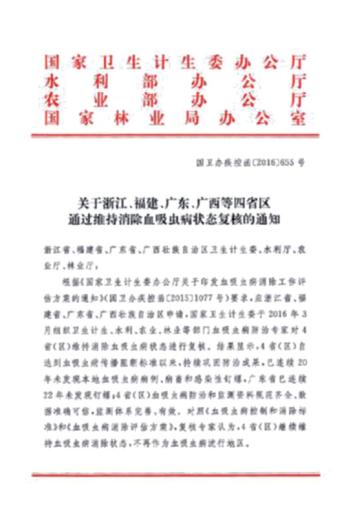 我国在血吸虫病防治初期阶段陆续制定了三个重要标准,分别是1958年的《基本消灭血吸虫病暂行标准》、1977年的《根除血吸虫病的标准》和1980年的《消灭血吸虫病试行标准》。