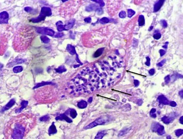 血液中和细胞内寄生的克氏锥虫(图片来源于文献)。