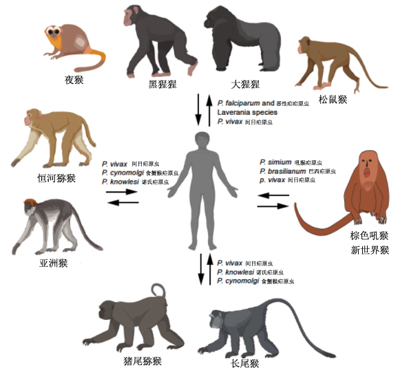 图:疟原虫在人类和非人灵长类动物之间的潜在传播