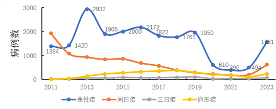 图2 2011-2023年间我国报告的疟疾病例分类