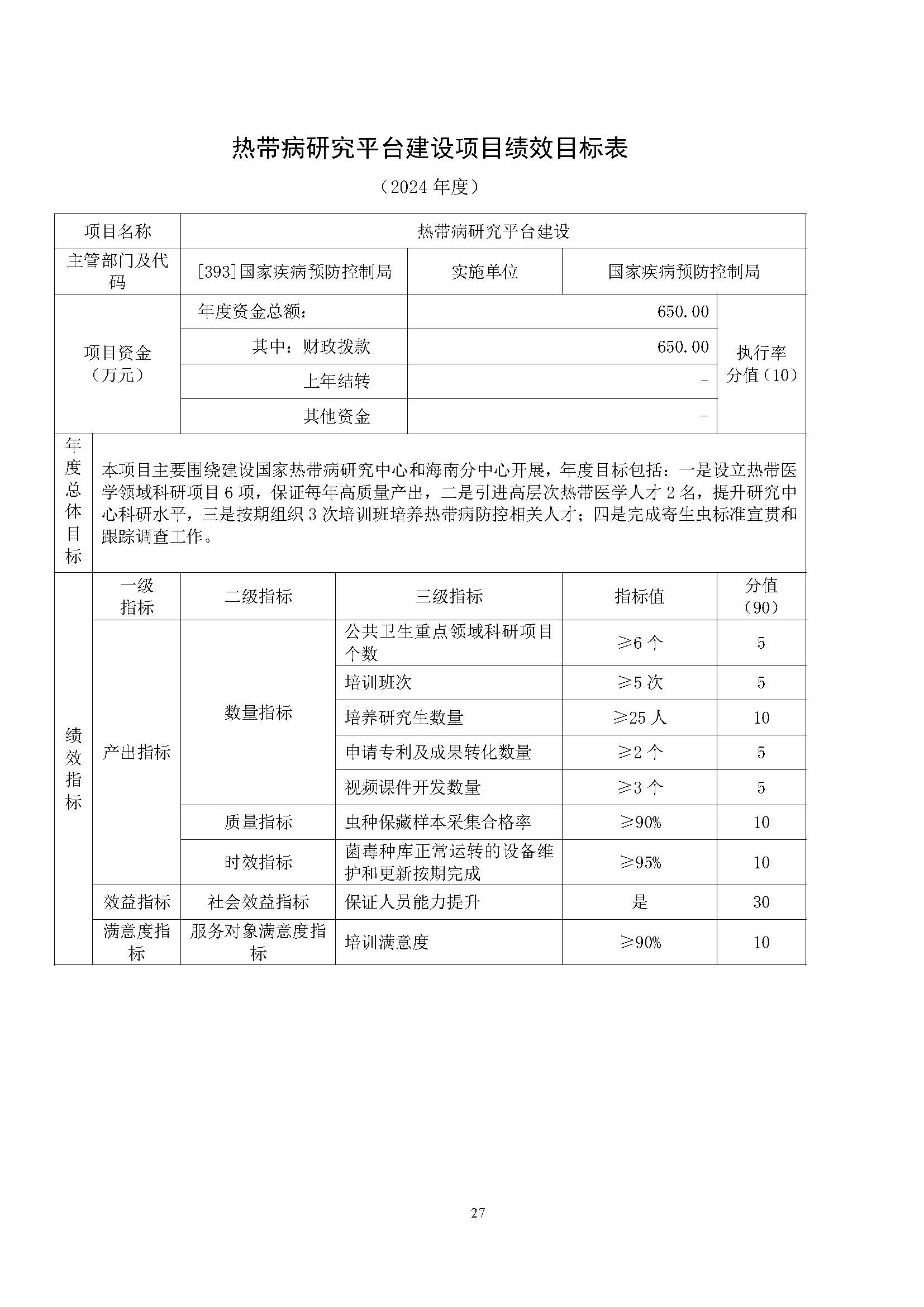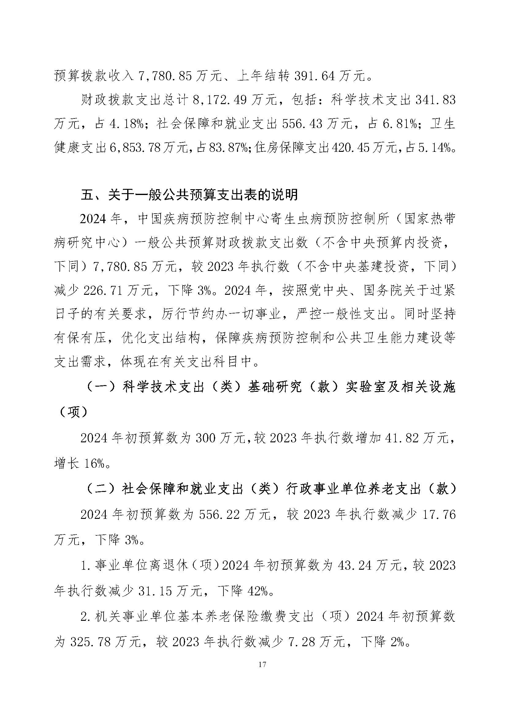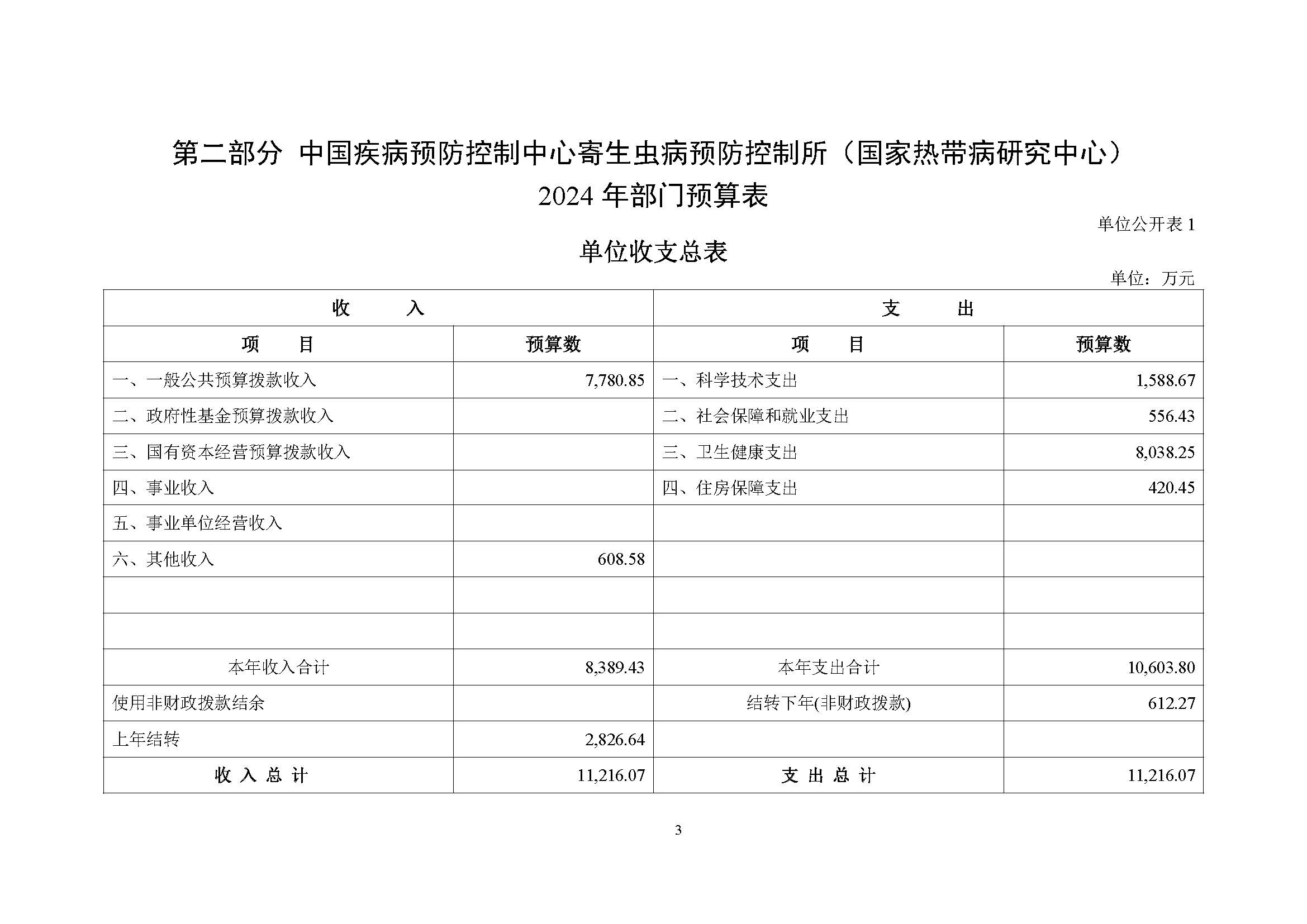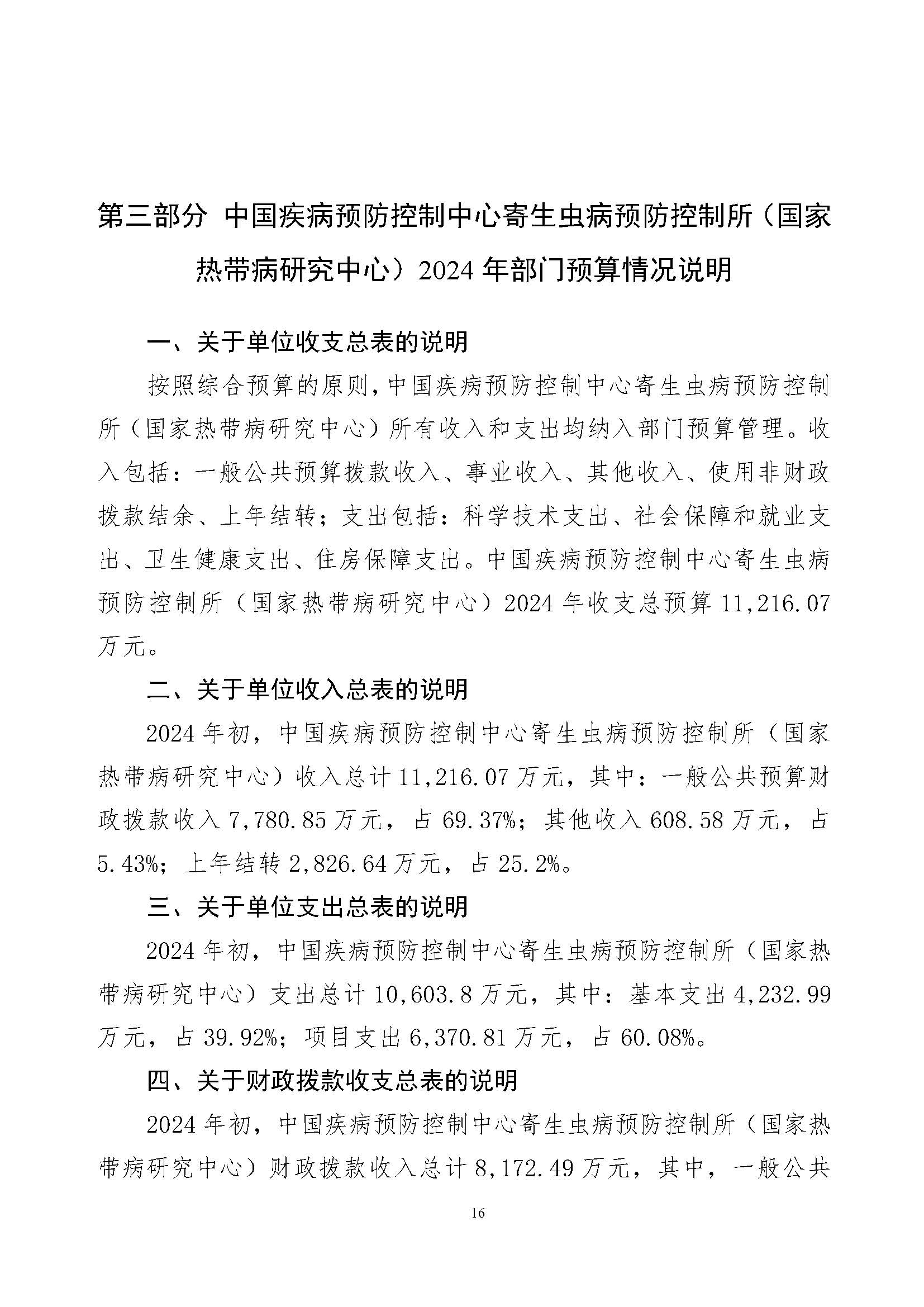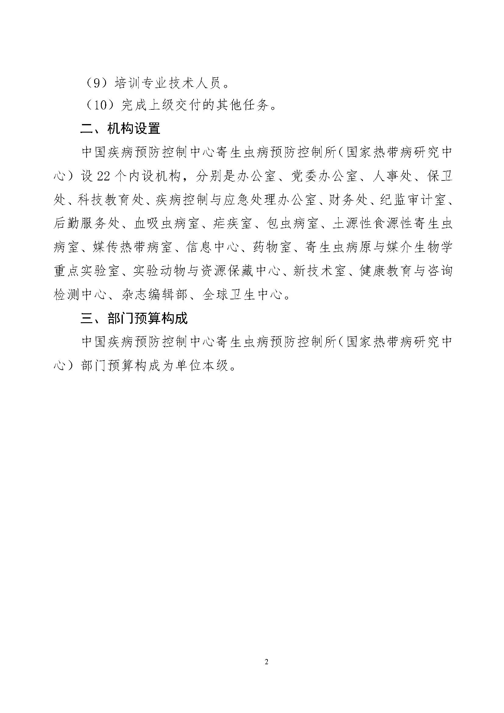 中国疾控中心寄生虫病所(国家热带病研究中心)2025年部门预算
