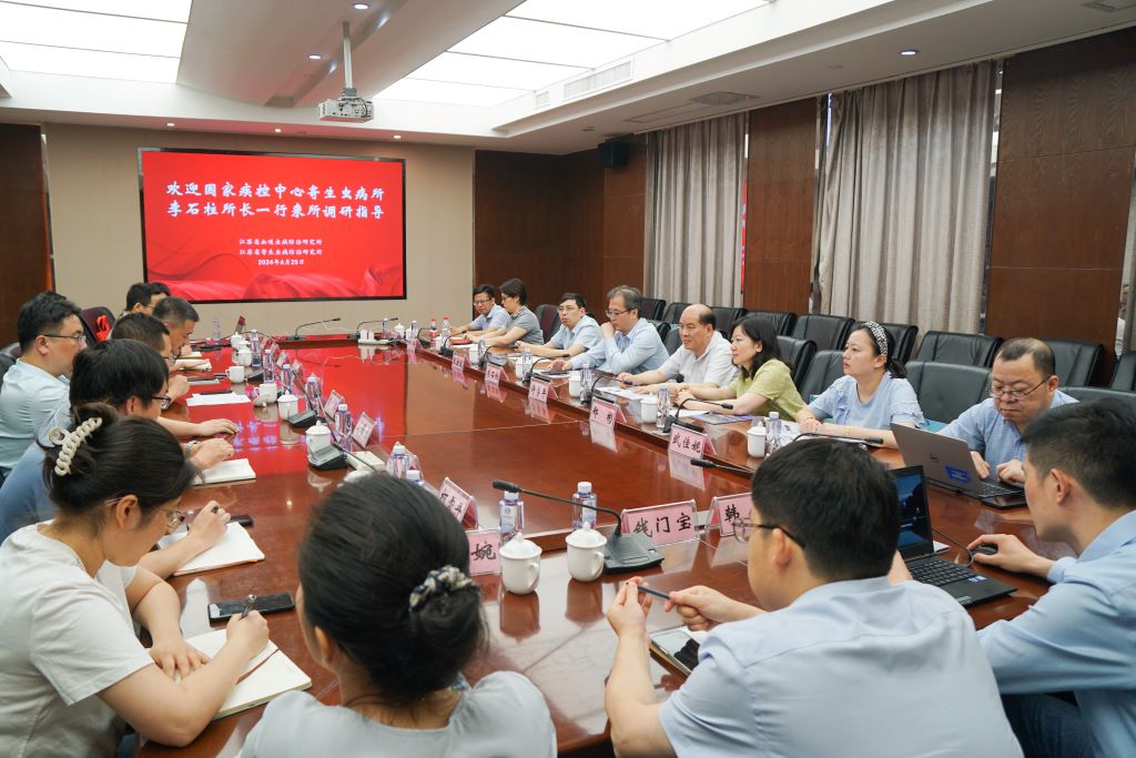 为进一步提升中国疾控中心寄生虫病所业务核心能力,促进全国寄生虫病防治事业高质量发展,2024年6月25日,中国疾控中心寄生虫病所李石柱所长率队赴江苏省寄防所调研交流。李石柱所长一行实地查看了江苏省寄防所实验室、室外蚊虫试验场地、寄生虫病科普馆以及文化水榭长廊等情况。
