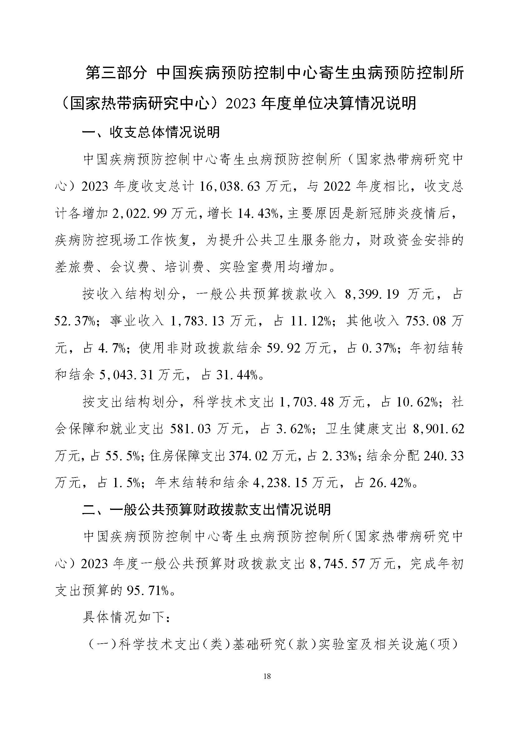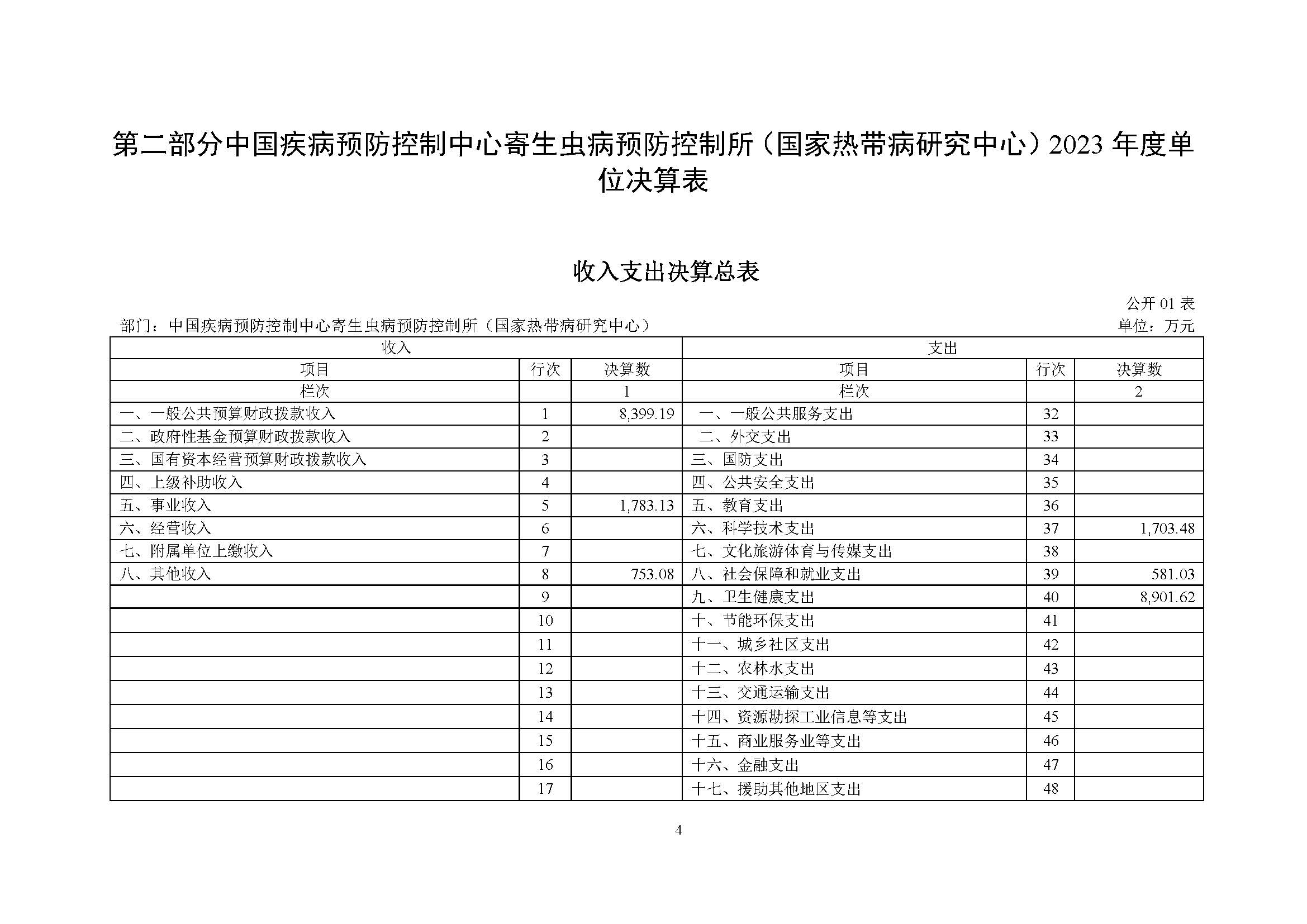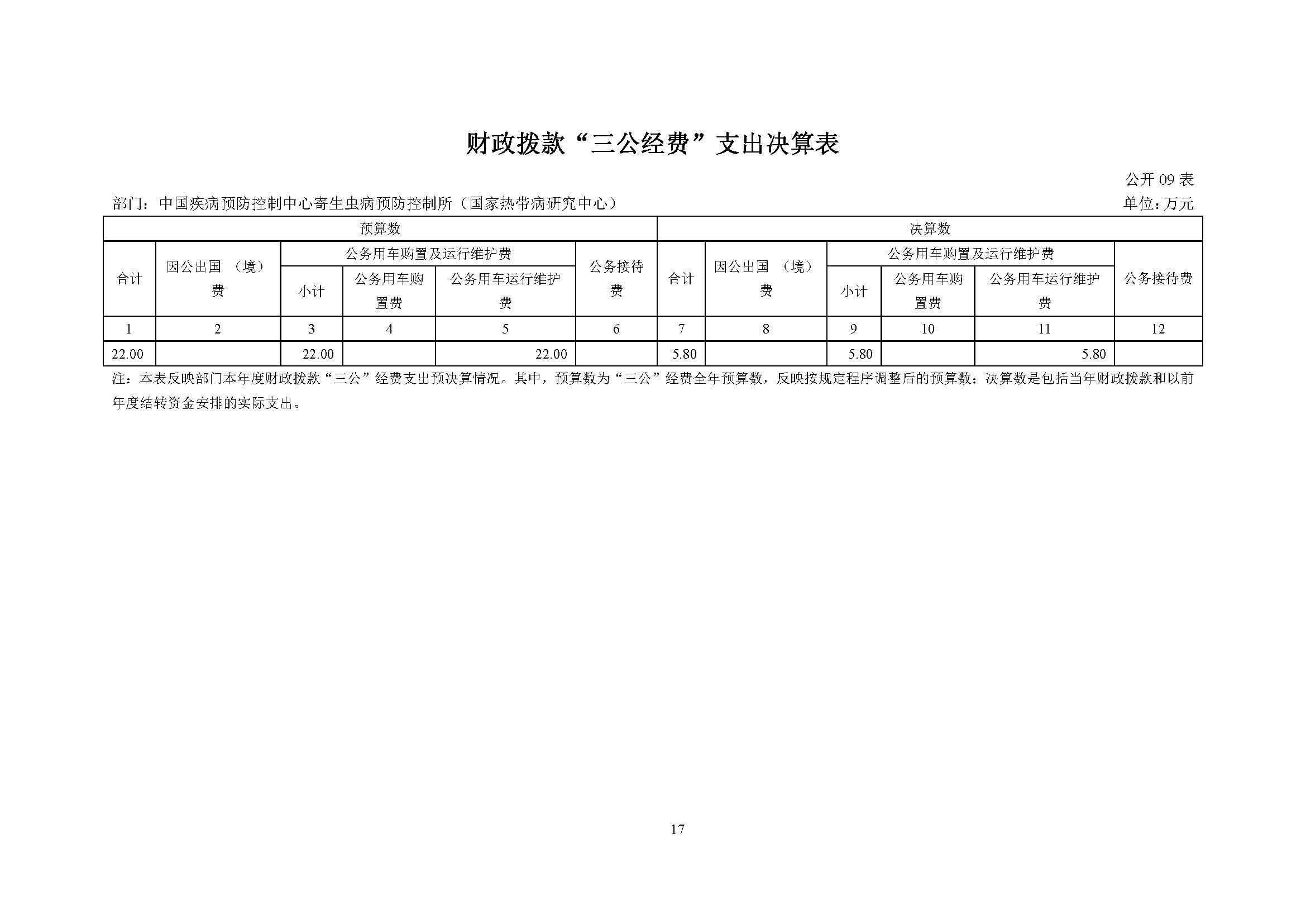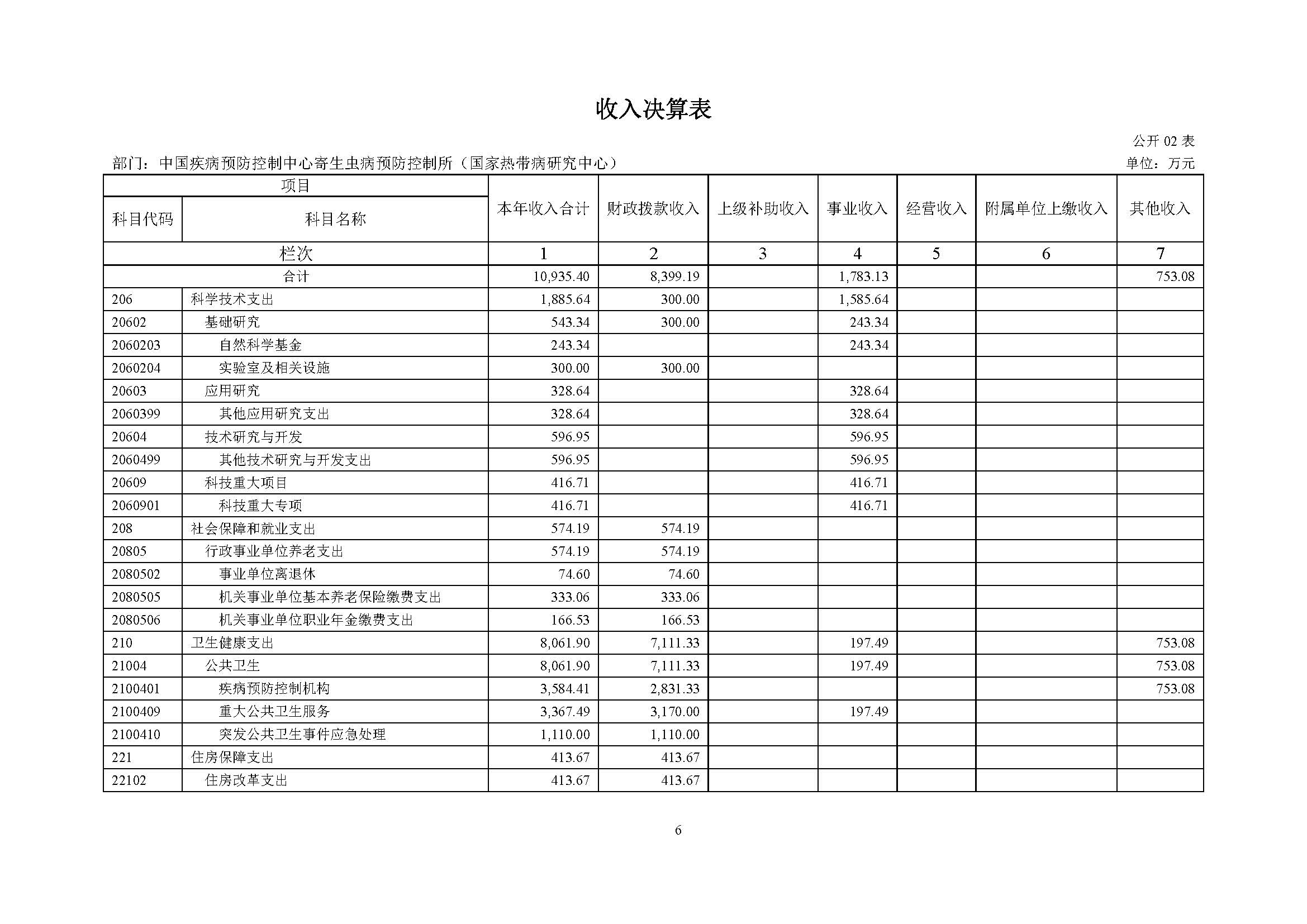 中国疾控中心寄生虫病所(国家热带病研究中心)2025年部门预算