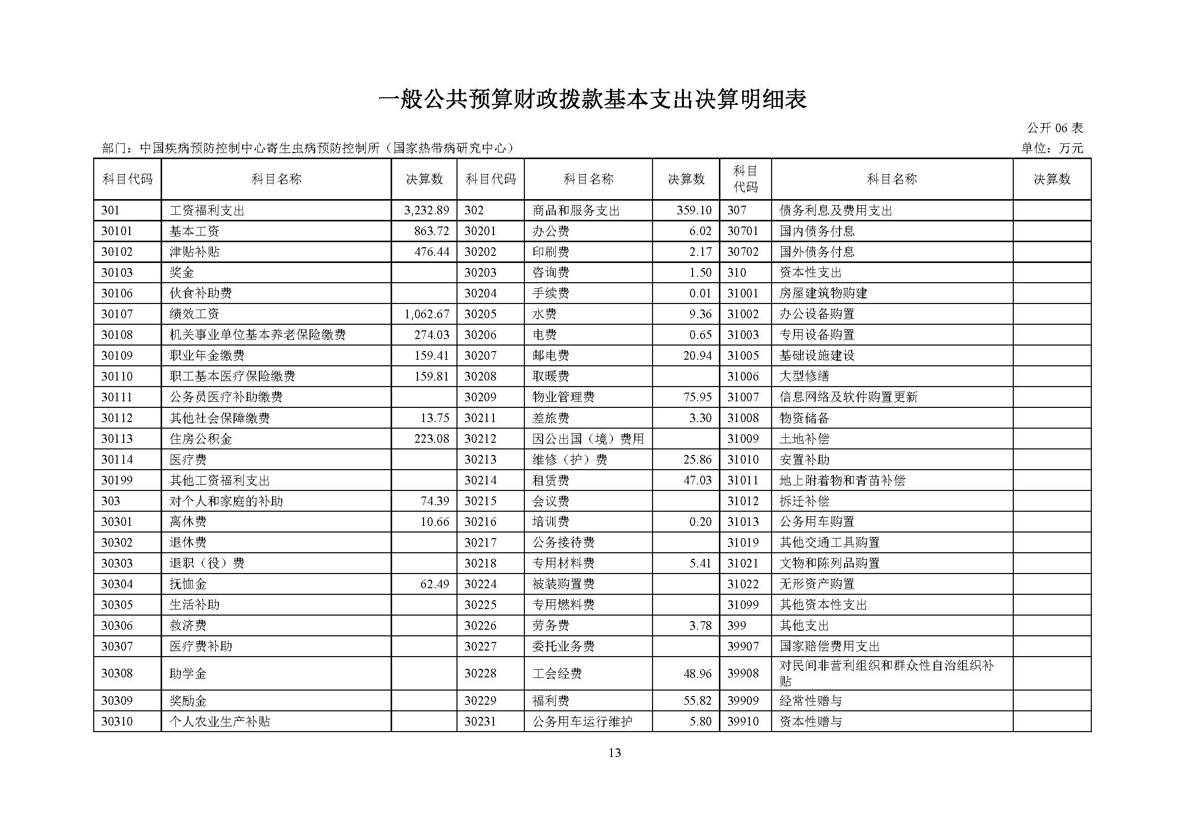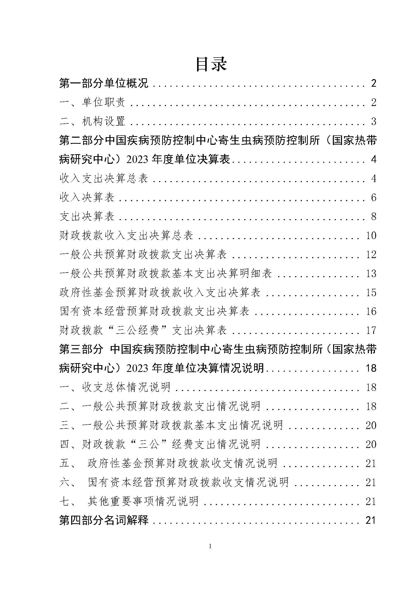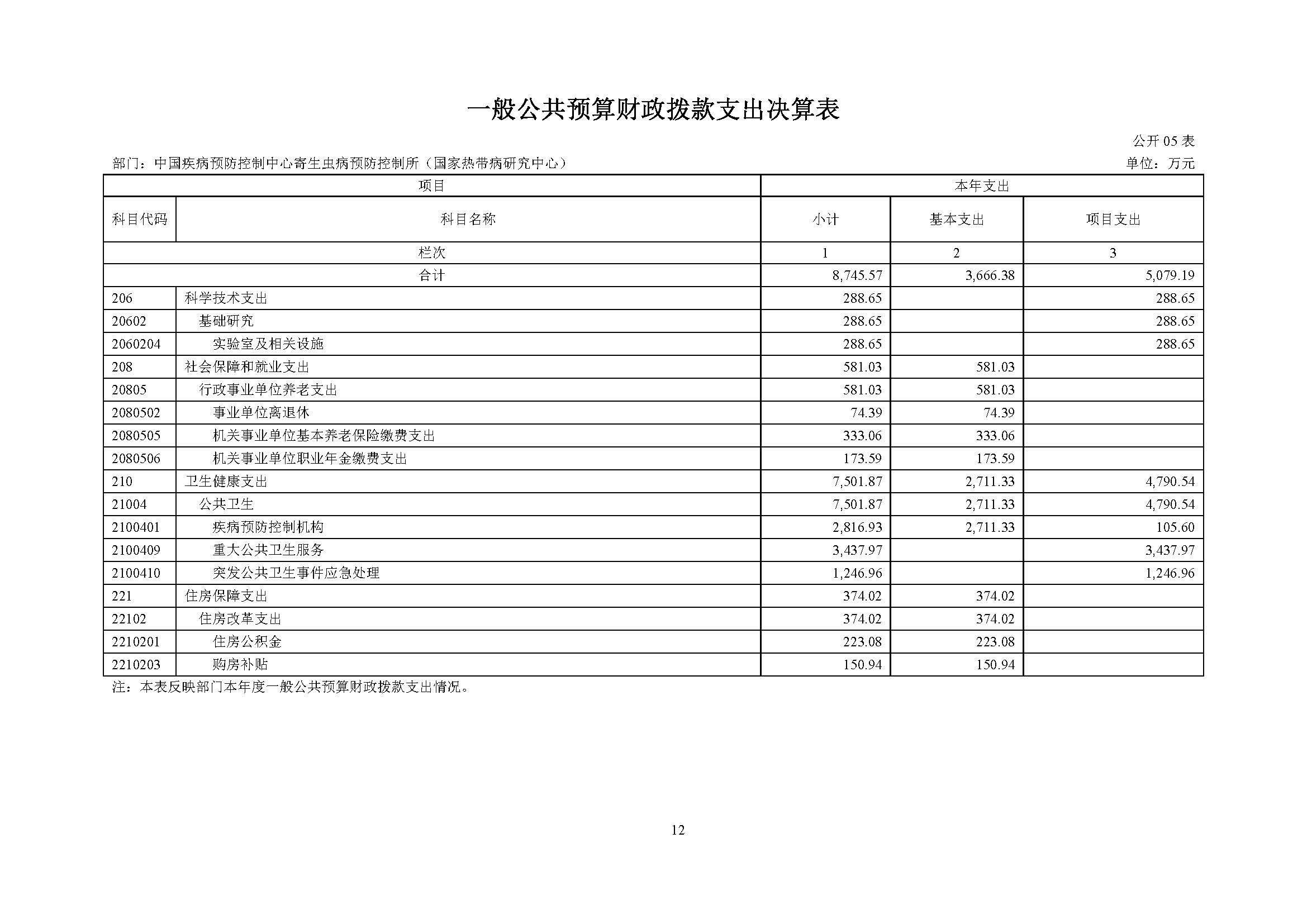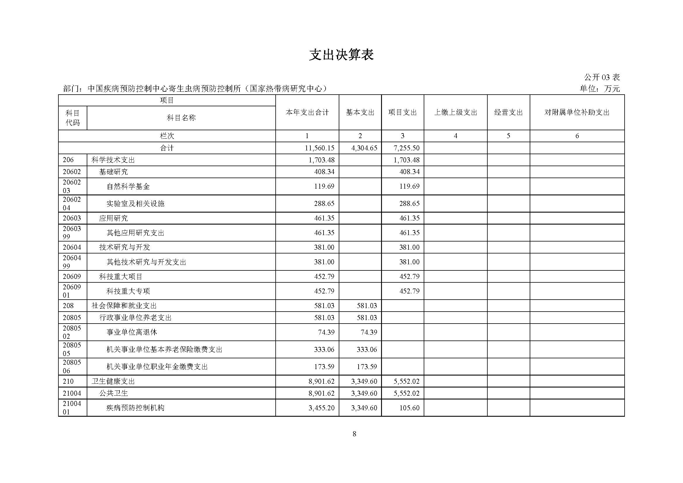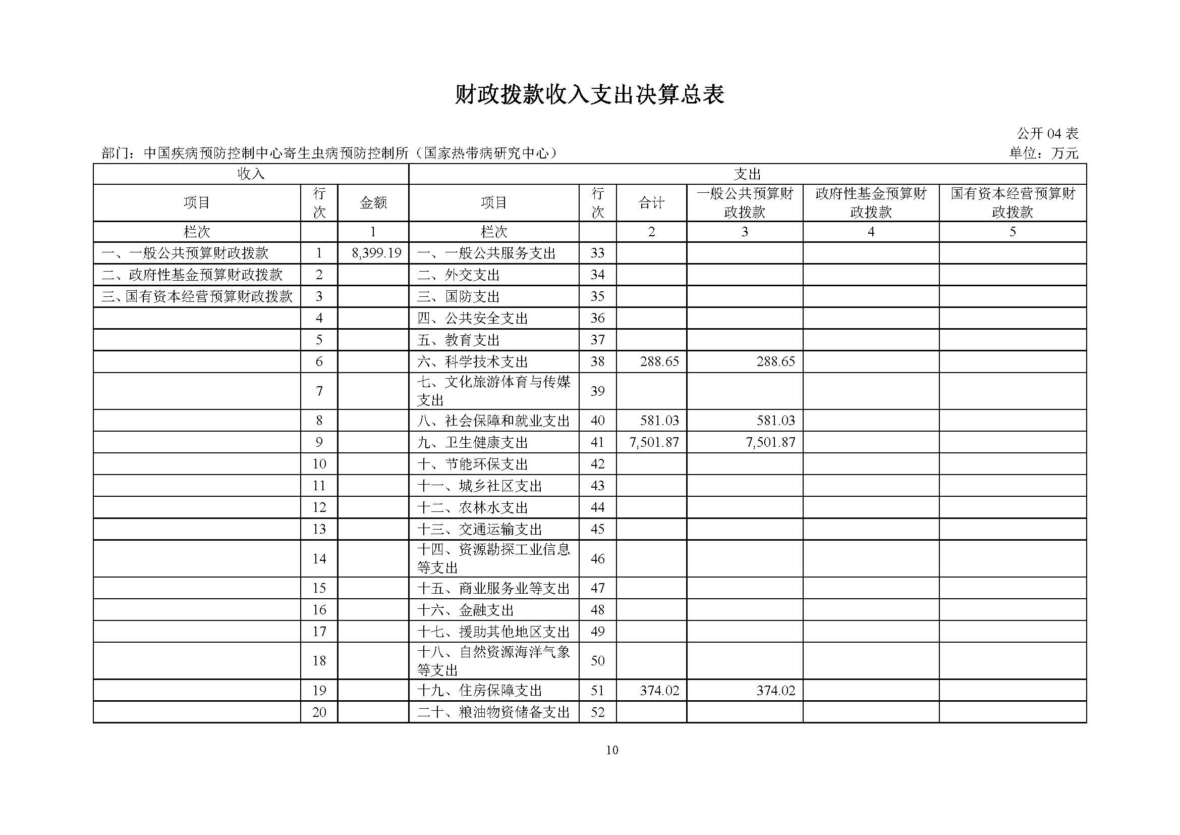 中国疾控中心寄生虫病所(国家热带病研究中心)2025年部门预算