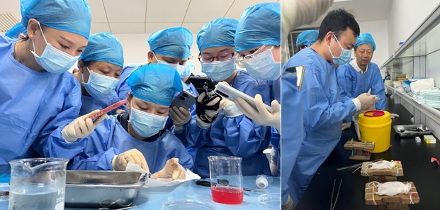 另外,本次培训班安排了全国13个省级血吸虫病诊断参比实验室做了近五年运行进展汇报交流,对未来诊断平台工作计划进行了研讨。根据国家疾控局对消除推进及巩固县工作安排及实际工作需求,培训班安排了3个实践课程内容,分别为血吸虫血清学检测方法之一的DDIA操作、血吸虫感染小鼠解剖实践操作以及血吸虫尾蚴攻击感染实验的演示。学员们在实验室中熟悉掌握了血吸虫病快速试纸条的实验操作,了解了血吸虫感染小鼠流程环节以及解剖方法。