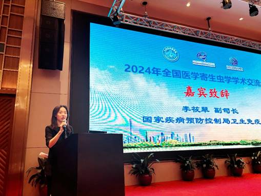 大会开幕式由中国疾控中心寄生虫病所所长李石柱研究员主持。广东省疾病预防控制中心张贤昌副主任首先致欢迎词,中华预防医学会常务副会长兼秘书长冯子健研究员在致辞中首先代表中华预防医学会对本次会议的顺利召开表示热烈祝贺,并高度赞扬了医学寄生虫分会长期以来在寄生虫病防治和科研领域的学术交流、人才培养、科普服务及决策咨询等方面取得的成绩,希望与会专家同行加强交流、分享经验、推进合作。国家疾控局卫生免疫司李筱翠副司长在讲话中回顾了我国寄生虫病防治的辉煌历程,她指出,本次会议的主题“传承寄防文化,推动消除进程”具有特别重要的现实意义,要传承老一辈寄防人优良传统,应对我国重点寄生虫病防治工作面临的新形势、新挑战、新要求,加强科技创新,坚持科学防治,进一步提升重点寄生虫病控制和消除工作的科技创新支撑水平,推动寄生虫病防治事业的高质量发展。